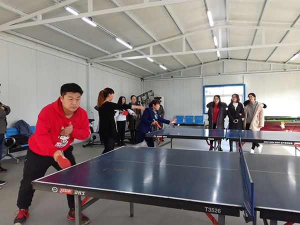 2月21日上午10點,鄭州明泰實業有限公司娛樂休閑室內正在進行乒乓球比賽,她們來自不同的崗位,卻在一起進行著友誼第一、輸贏第二的友好比賽!